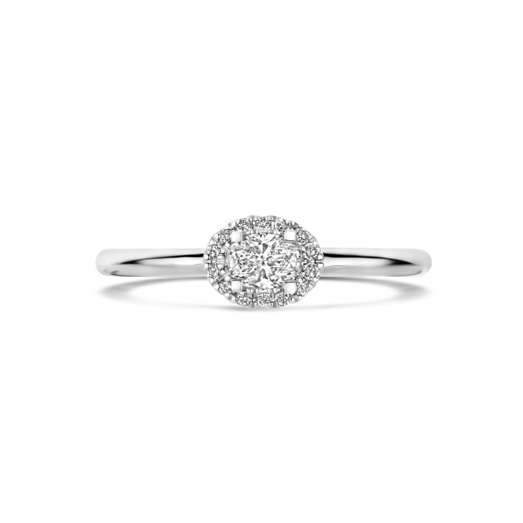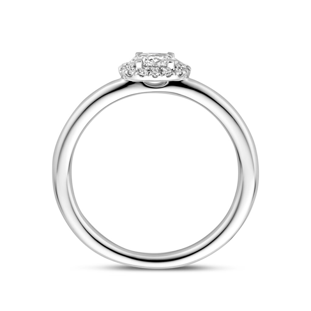 14k Witgouden ring uitgevoerd met diamant. De ring heeft een afmeting van 6×7.5mm. De totale diamantgewicht is 0.29ct.