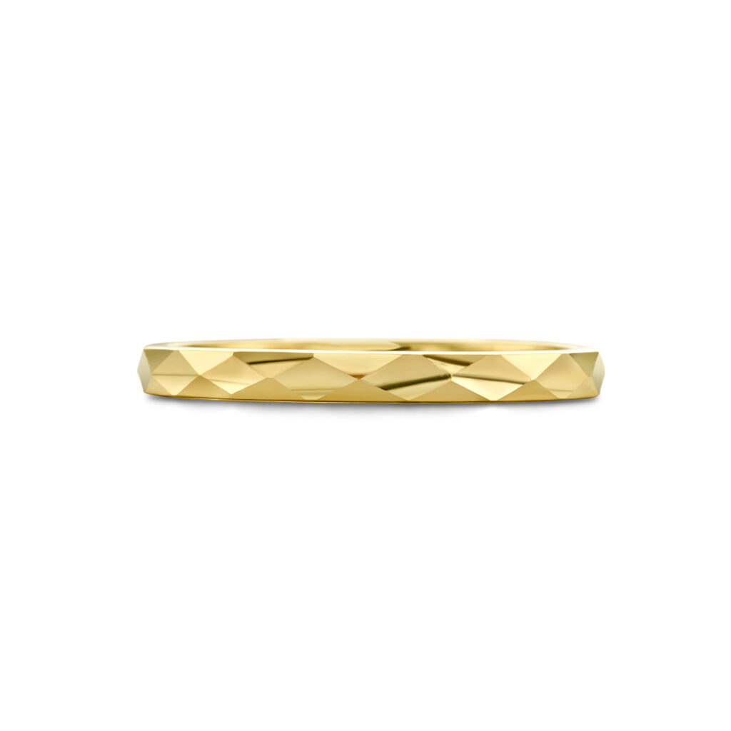 14k Geelgouden ring met een breedte van 2mm.