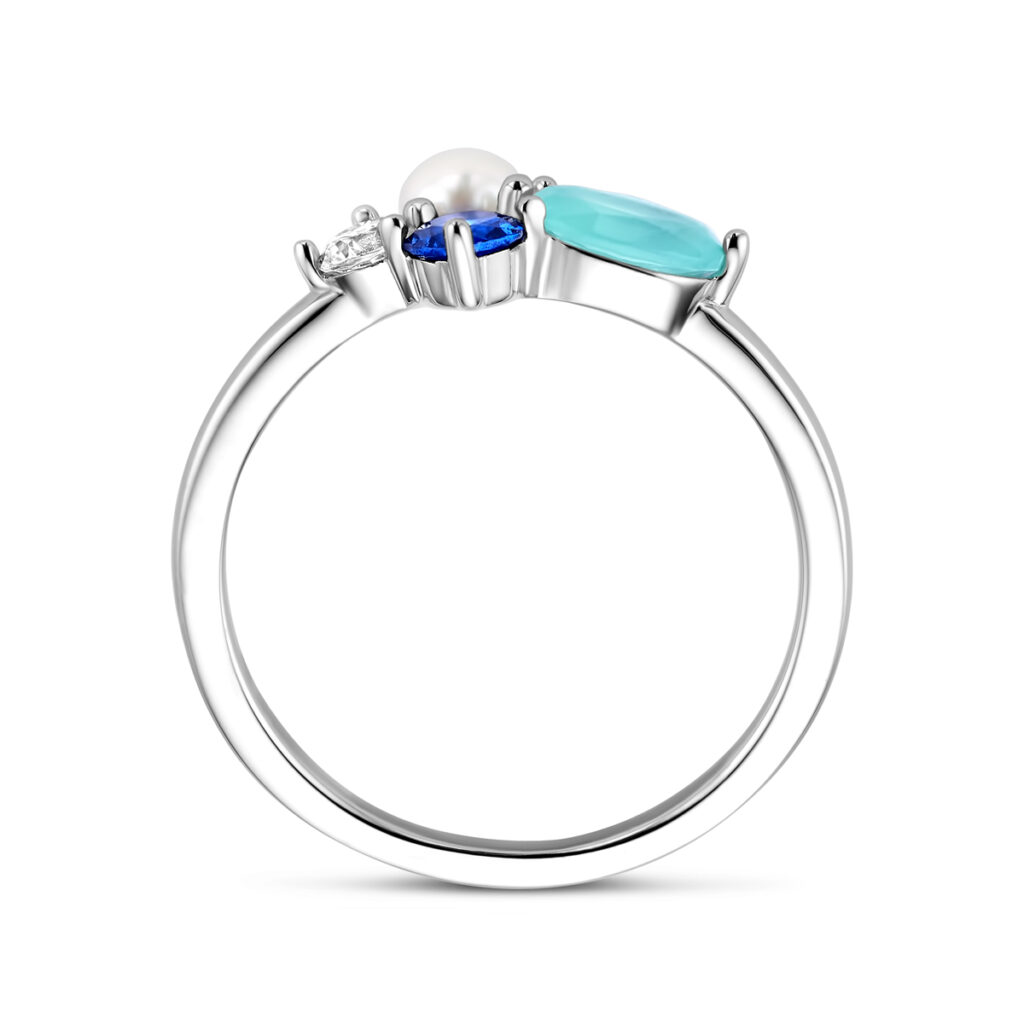 Ring Gekleurd Zirkonia, Parel En Kleursteen Zilver Gerhodineerd