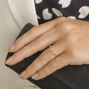 Stijlvolle geelgouden ring met een breedte van 3mm uitgevoerd met een schakelmotief. Minimalistisch design voor een exclusieve uitstraling.