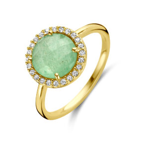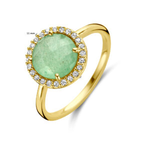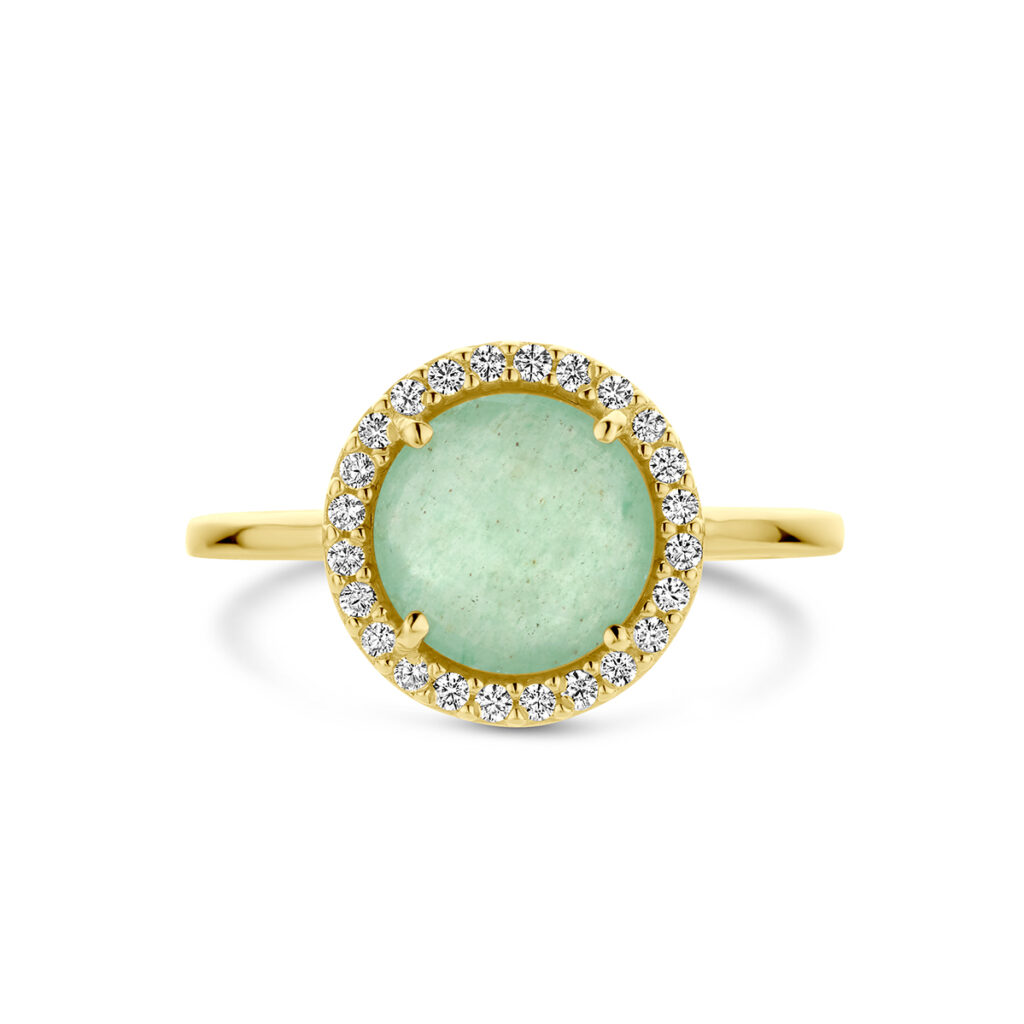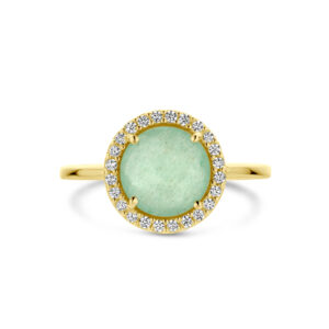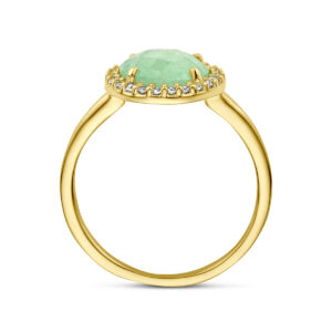 Ring Groen Agaat En Zirkonia Halo 14K Geelgoud