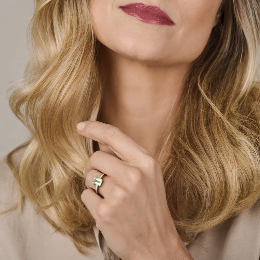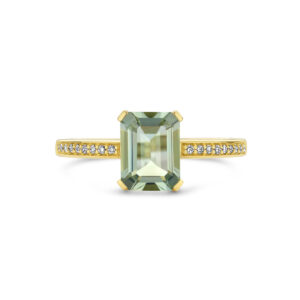 Ring Groen Amethist En Diamant 0.07Ct H Si 14K Geelgoud