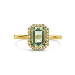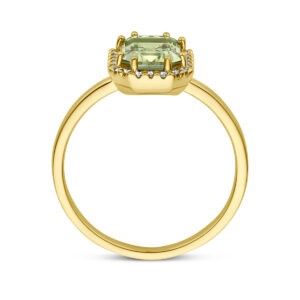 Ring Groen Amethist En Diamant 0.10Ct H Si Halo 14K Geelgoud