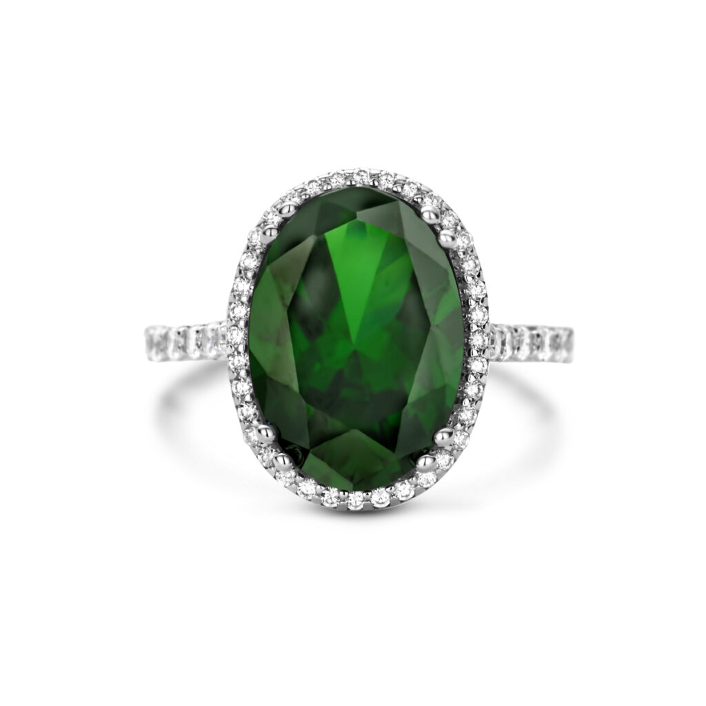Ring Groen En Wit Zirkonia Halo Zilver Gerhodineerd