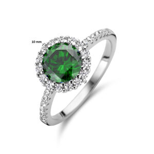 Ring Groen En Wit Zirkonia Halo Zilver Gerhodineerd