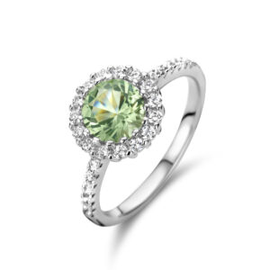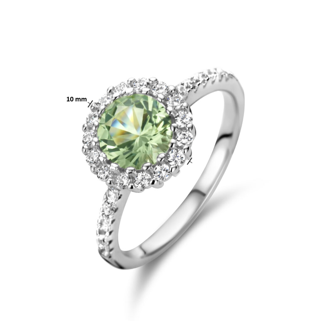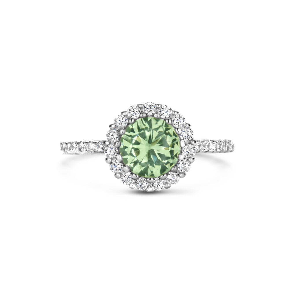 Ring Groen En Wit Zirkonia Halo Zilver Gerhodineerd