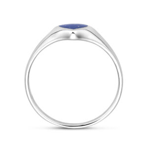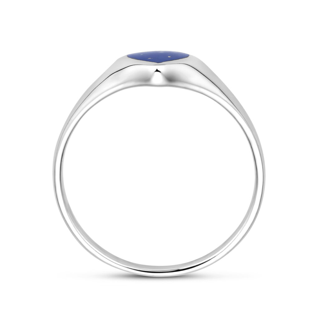 Gerhodineerd 925 zilveren ring uitgevoerd in de vorm van een hartje met lapis. De ring heeft een breedte van 6mm.