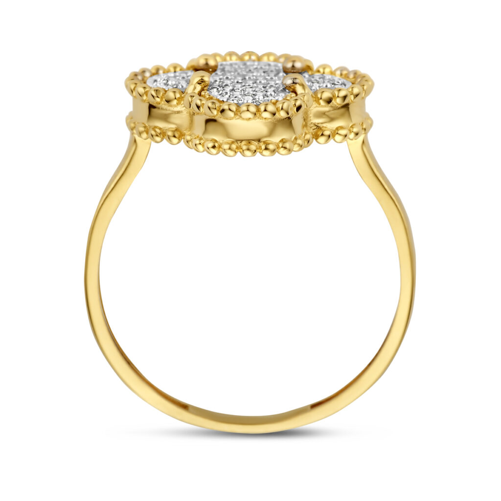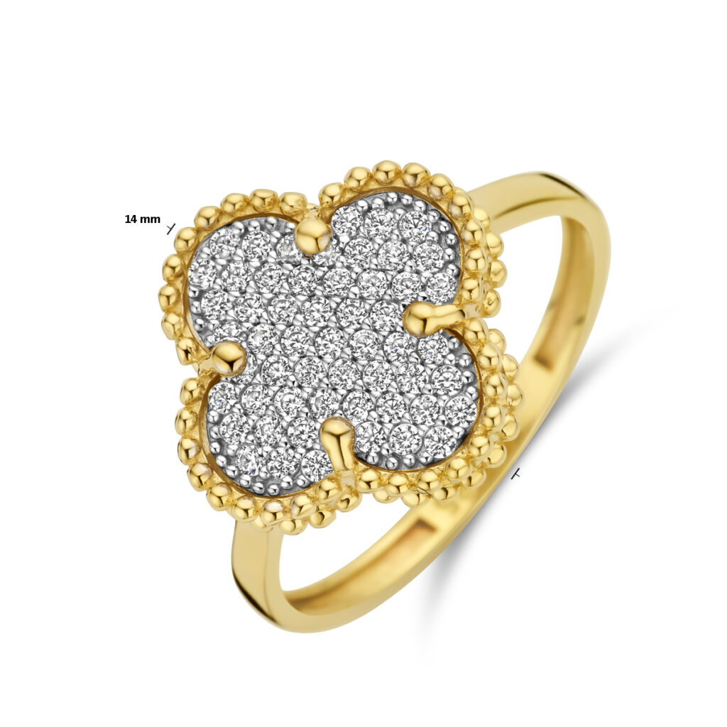 Ring Klavertje Zirkonia 14K Geelgoud