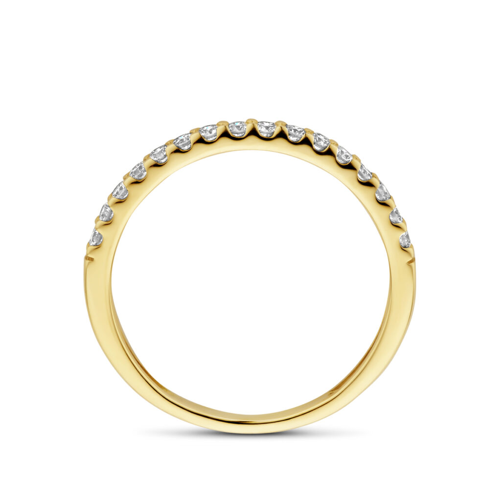 14k Geelgouden geelgouden ring uitgevoerd met lab grown diamant. De ring heeft een breedte van 2mm.