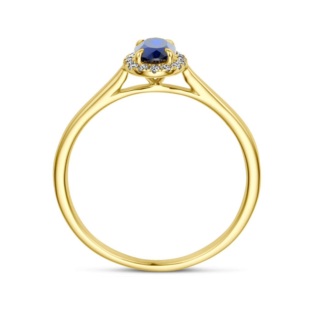 Ring Lab Grown Saffier En Diamant 0.075Ct H Si Halo 14K Geelgoud