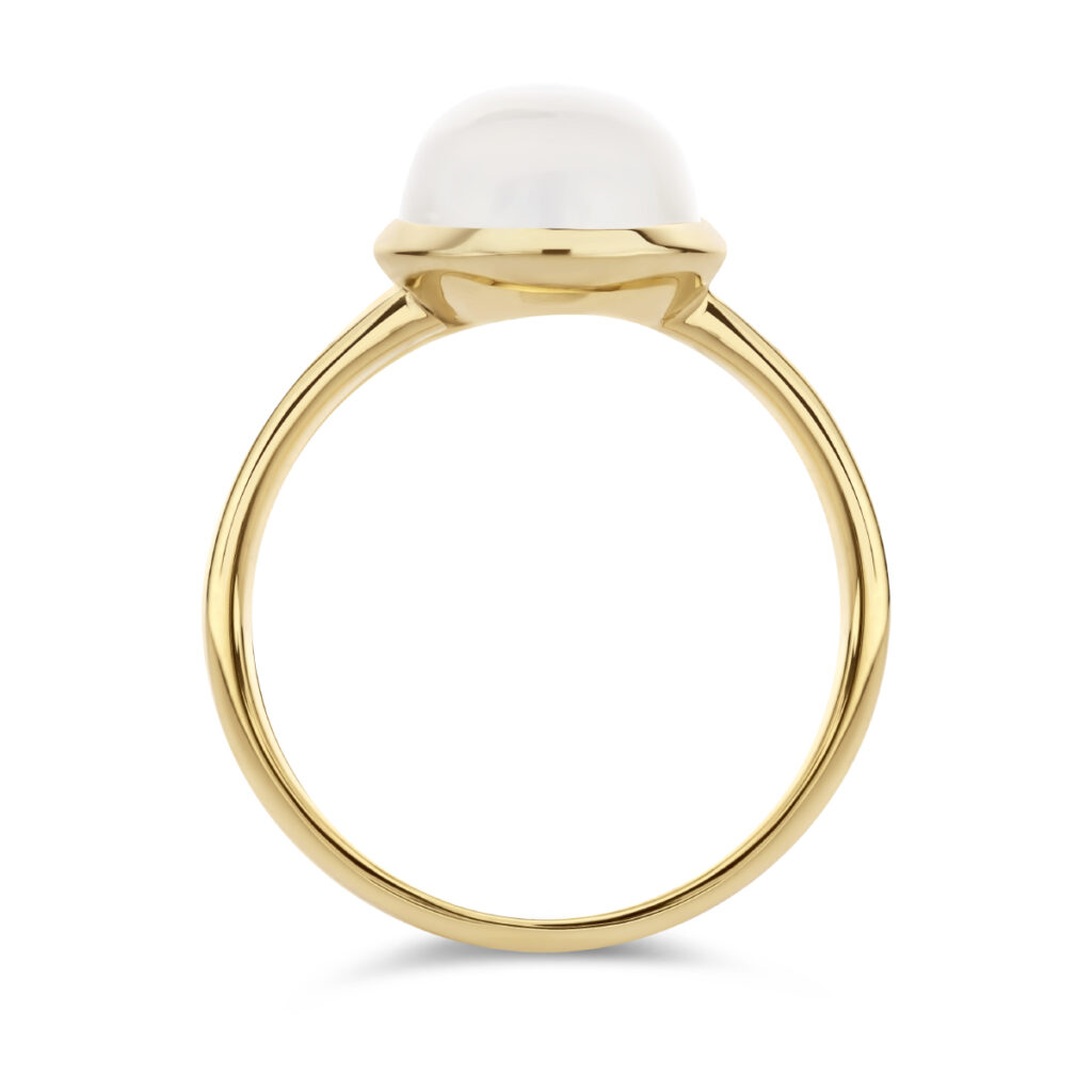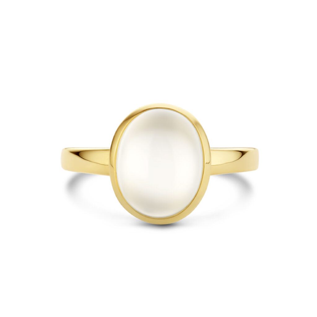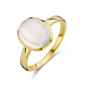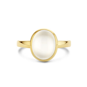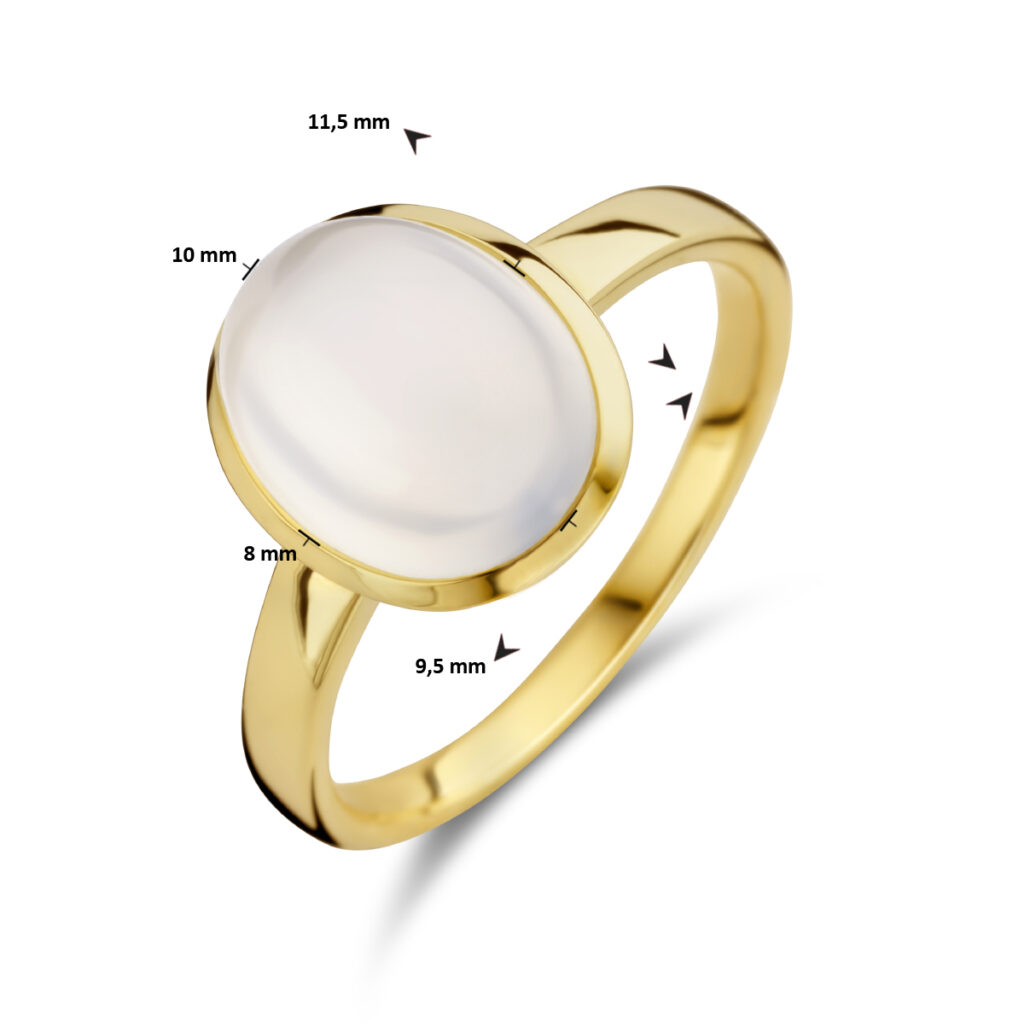 14k Geelgouden ring uitgevoerd met een schitterende witte maansteen. De ring heeft een afmeting van 11.5×9.5mm.