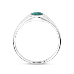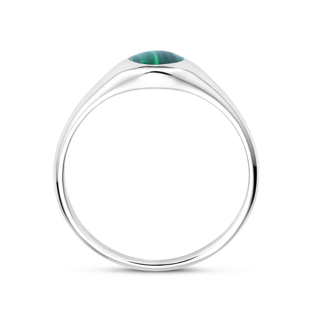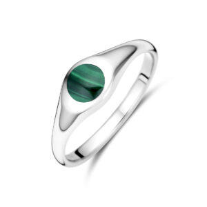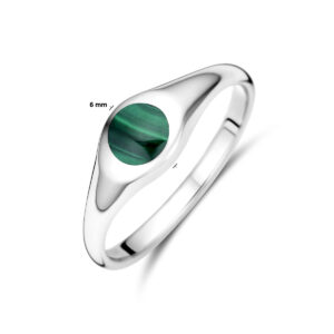 Gerhodineerd 925 zilveren ring uitgevoerd met malachiet. De ring heeft een breedte van 6mm.