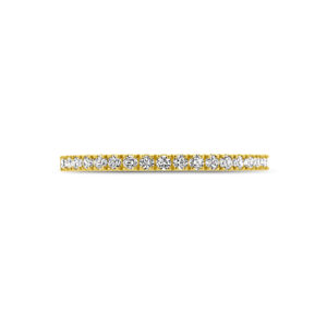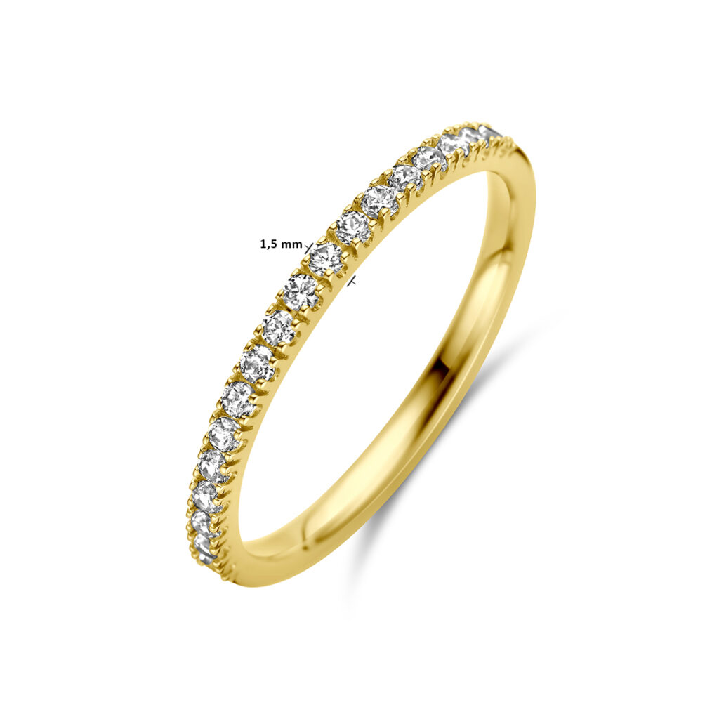 14k Geelgouden ring met geboortesteen uitgevoerd met zirkonia. De ring heeft een breedte van 1.5mm.