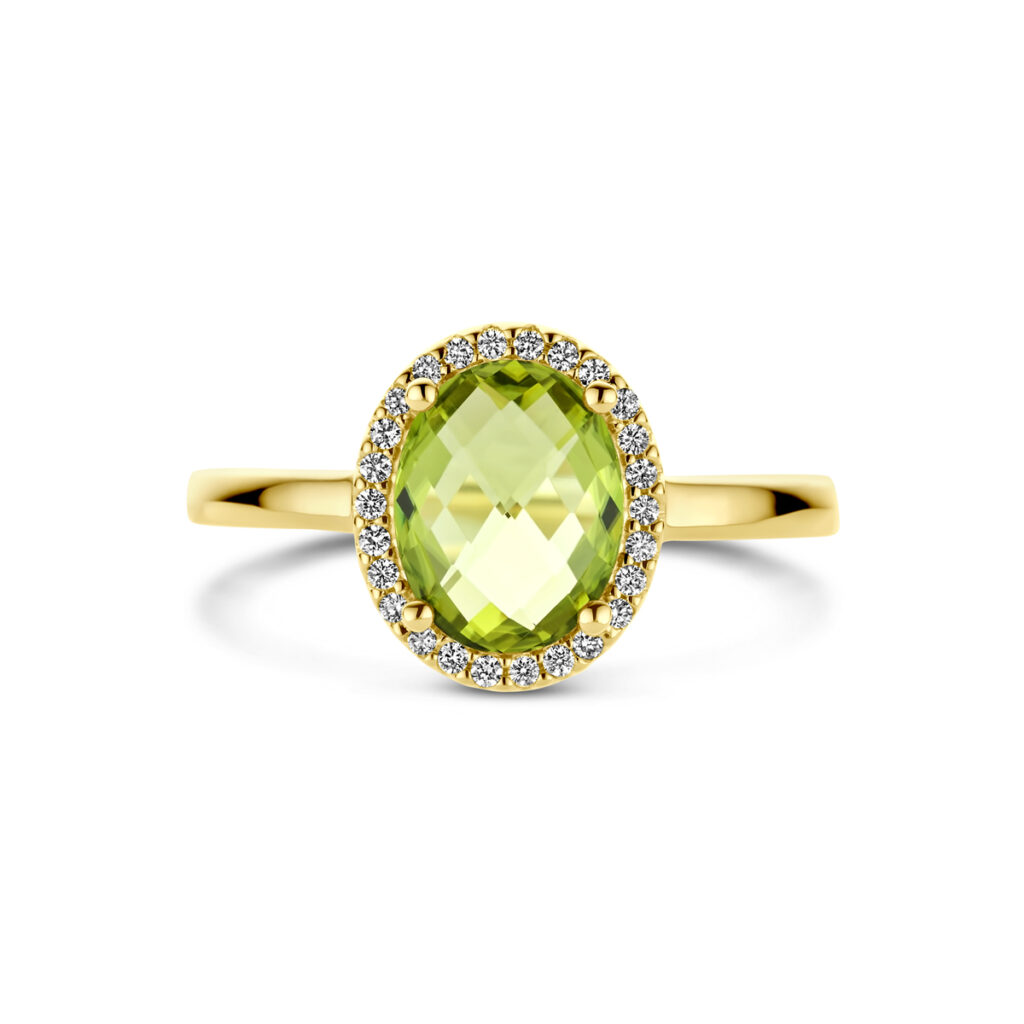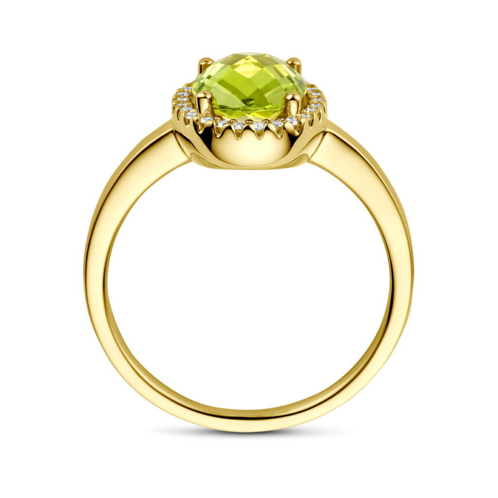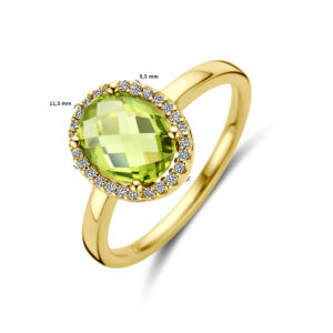 Ring Peridot En Diamant 0.10Ct H Si 14K Geelgoud