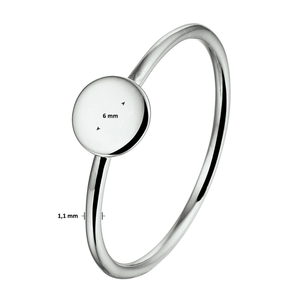 Gerhodineerd zilveren dames ring uitgevoerd met een poli afgewerkt rondje. De ring heeft een breedte van 6mm.