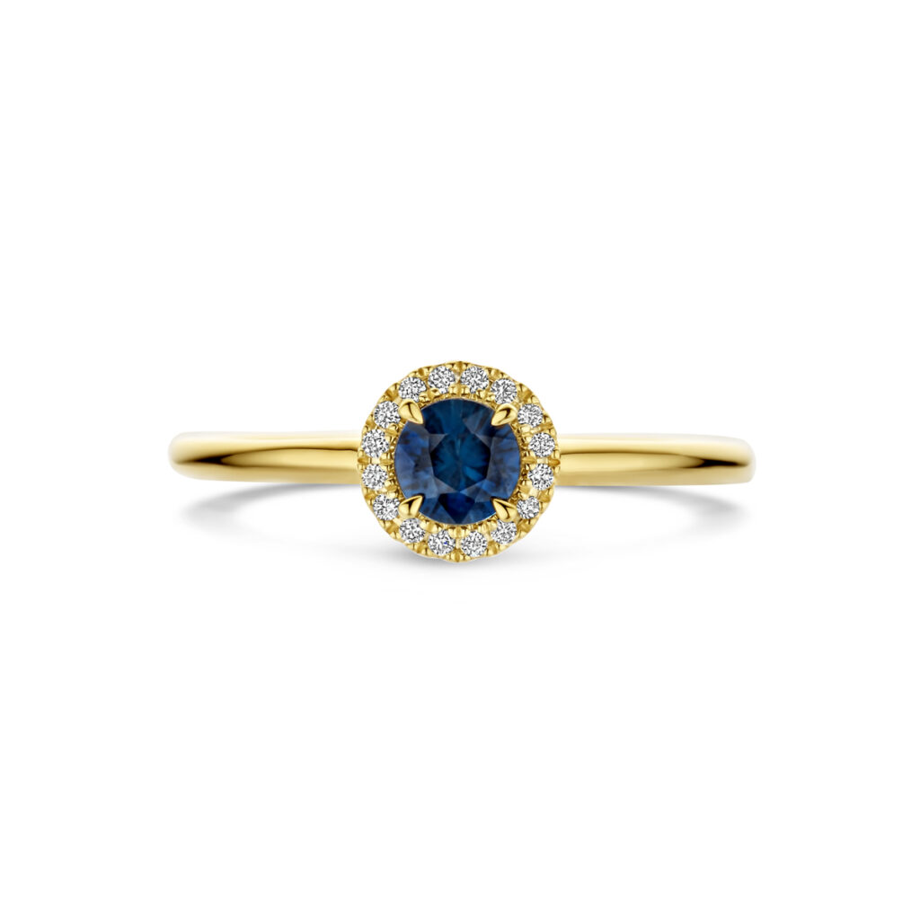 Ring Saffier En Diamant 0.05Ct Si 14K Geelgoud