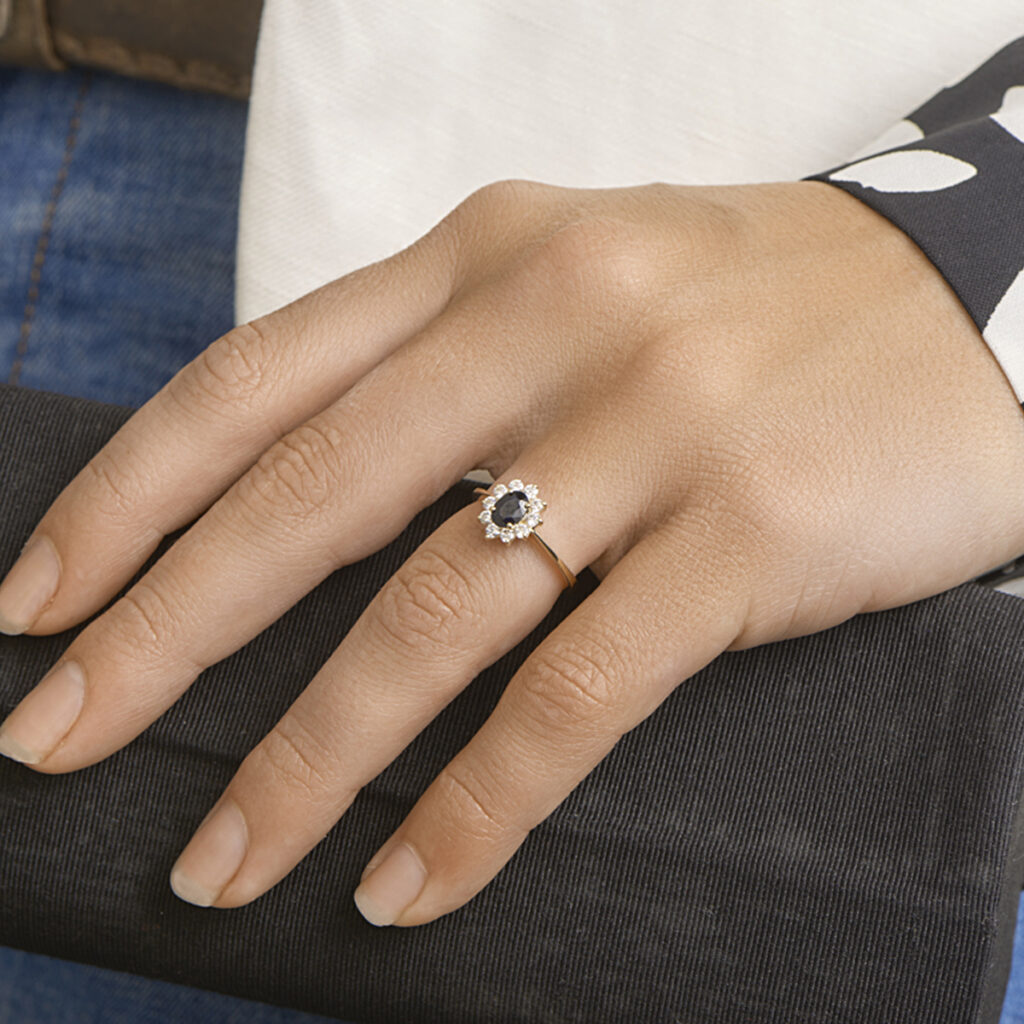 Ring Saffier En Zirkonia Halo 14K Geelgoud