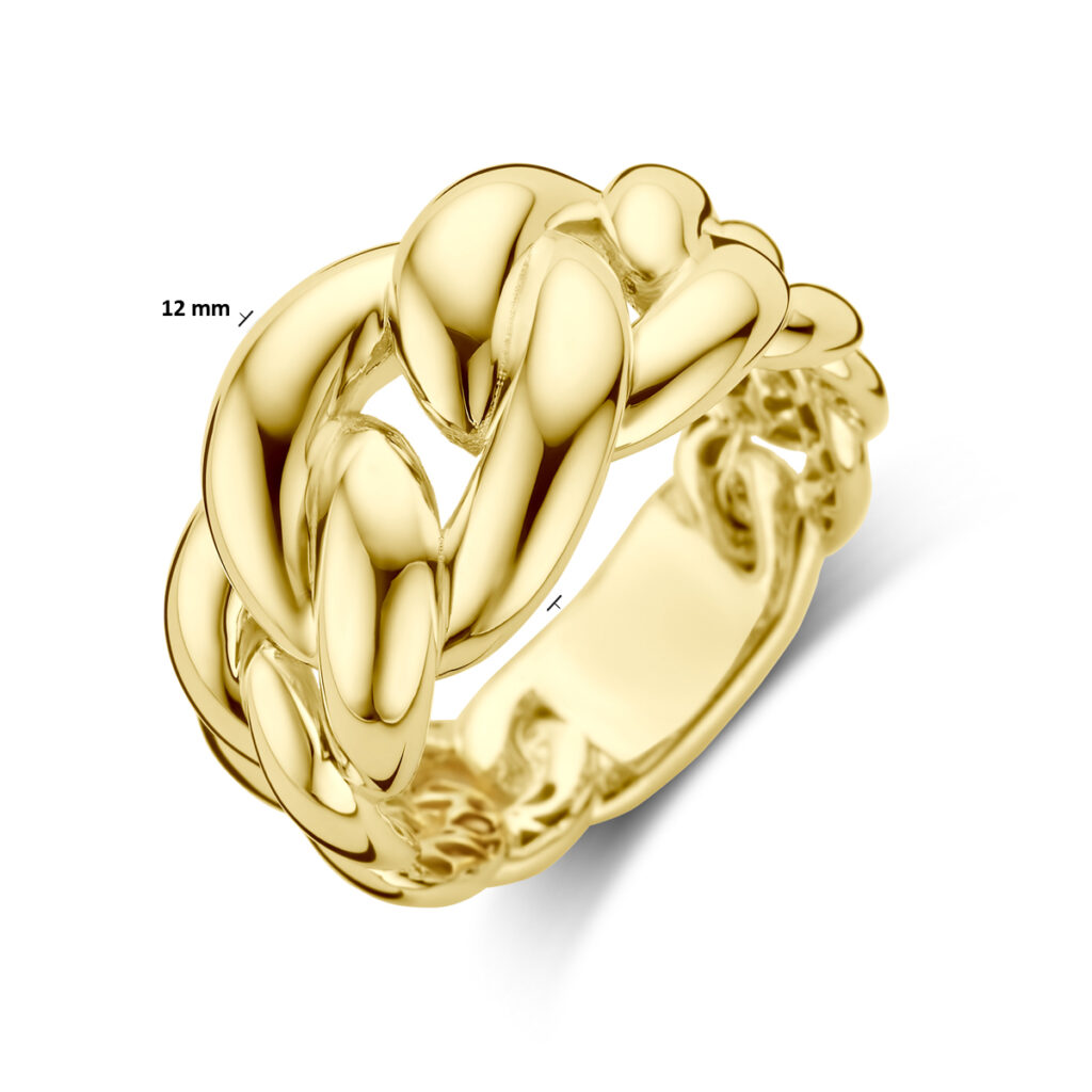 14k Geelgouden gourmet schakel ring. De ring heeft van breedte van 12mm.