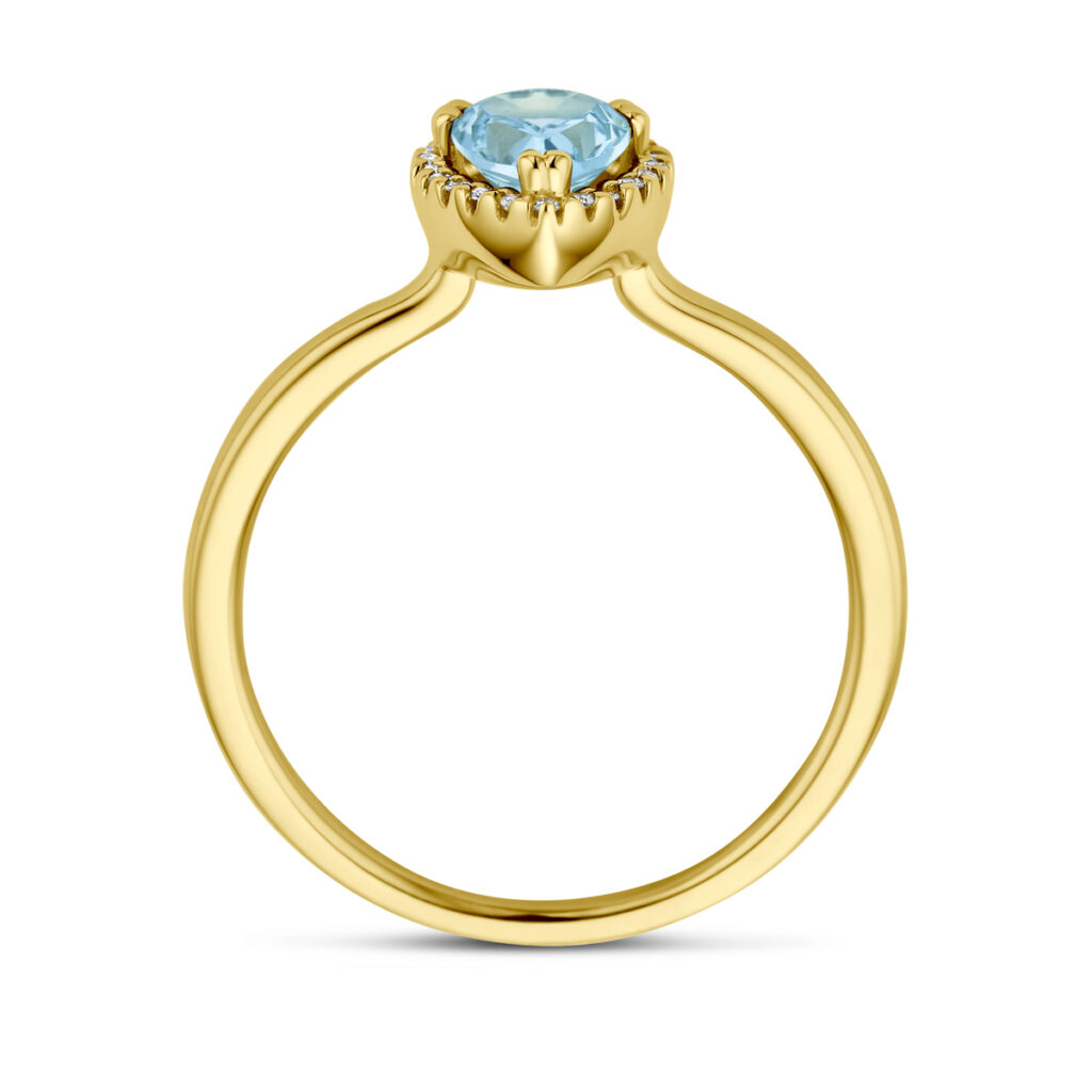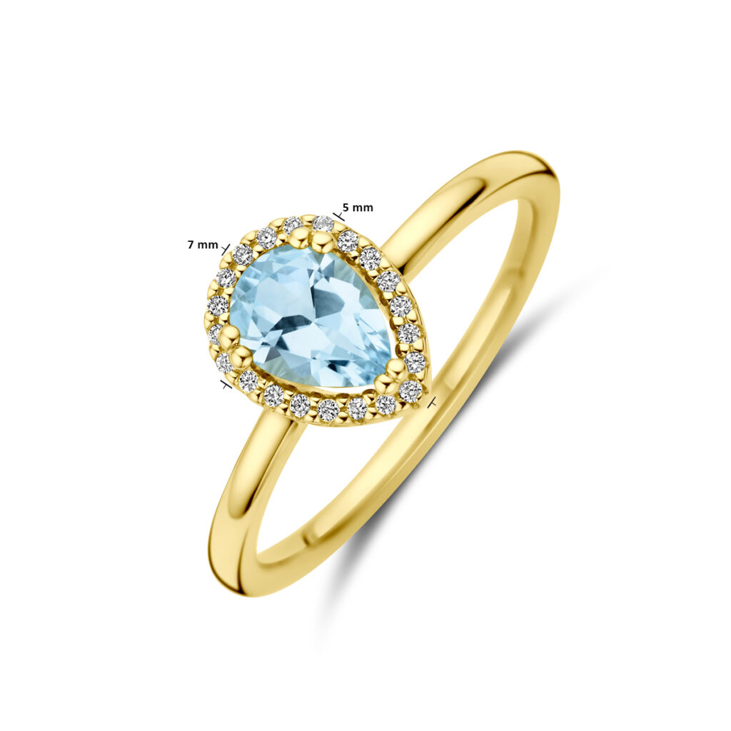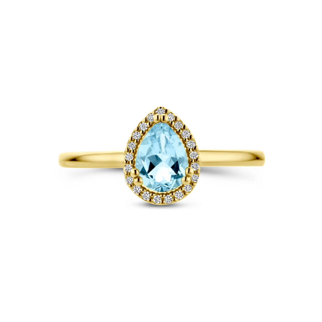 Ring Sky Blue Topaas En Diamant 0.06Ct H Si Halo 14K Geelgoud