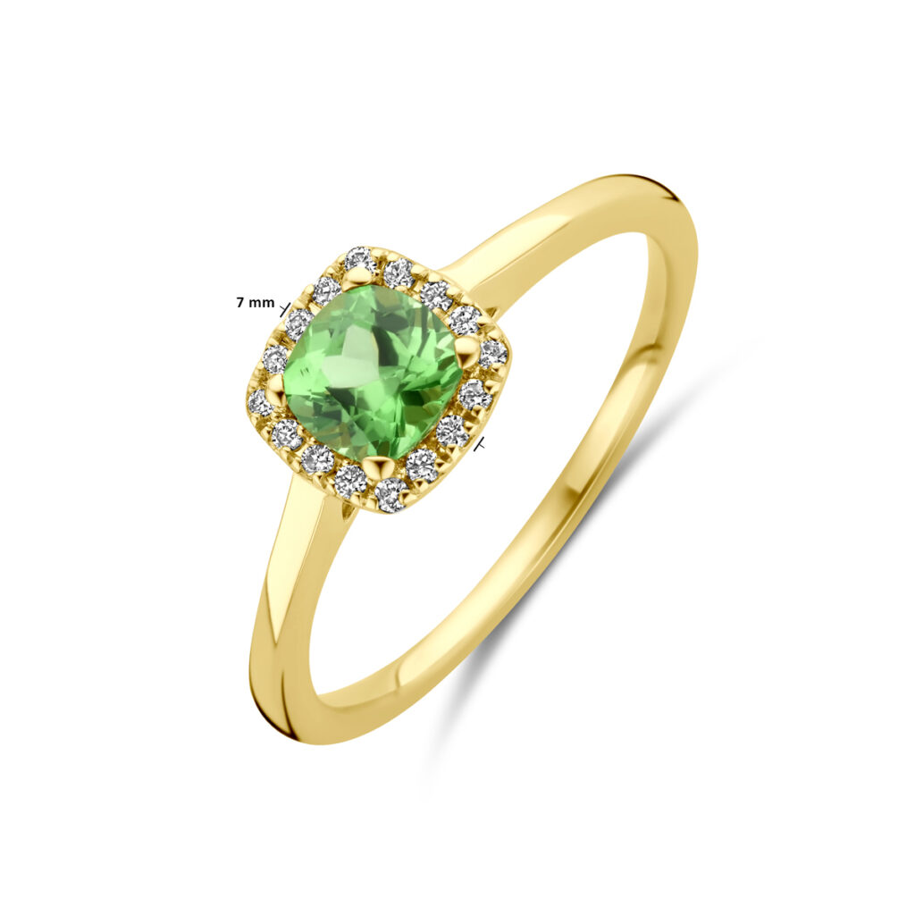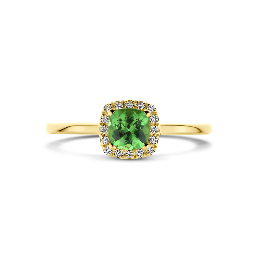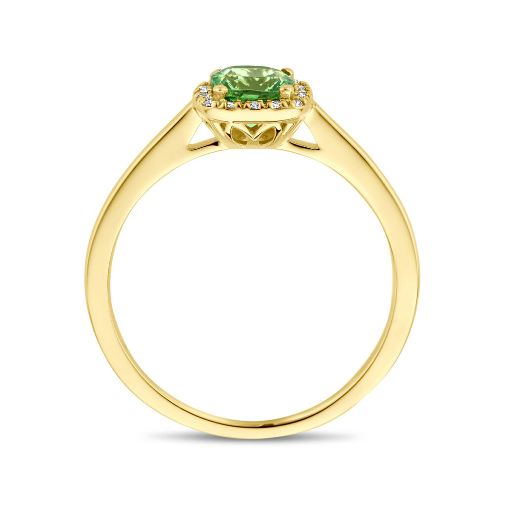 Ring Tsavoriet En Diamant 0.07Ct H Si Halo 14K Geelgoud