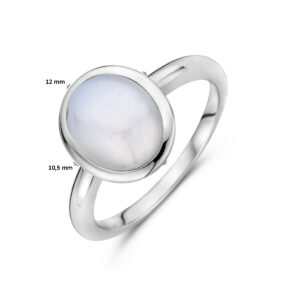 Gerhodineerd 925 zilveren ring uitgevoerd met wit chalcedoon. De ring heeft een afmeting van 12×10.5mm.