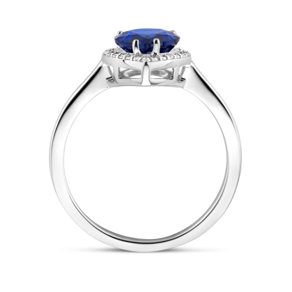 Ring Wit En Blauw Zirkonia Halo Zilver Gerhodineerd