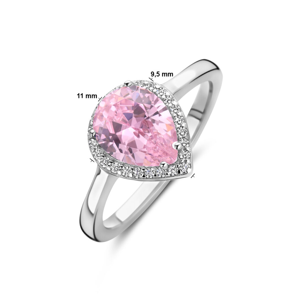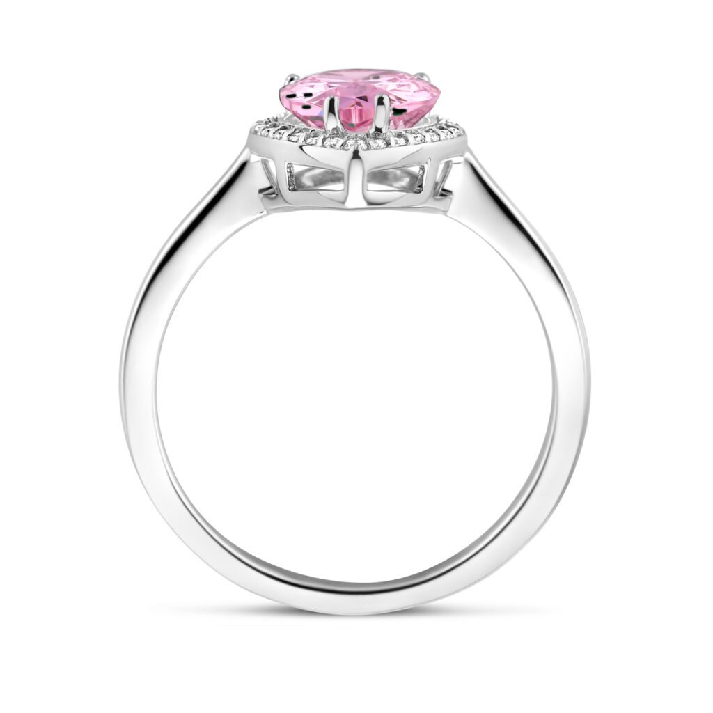 Ring Wit En Roze Zirkonia Halo Zilver Gerhodineerd