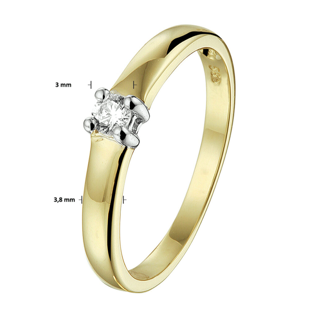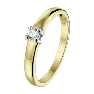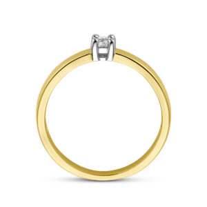 Bicolor wit- en geelgouden ring uitgevoerd met een schitterende zirkonia van 3mm in een chaton zetting. Tijdloos design voor een chique uitstraling! Draag deze ring apart of naast uw andere ringen om steeds weer een andere look te creeren.