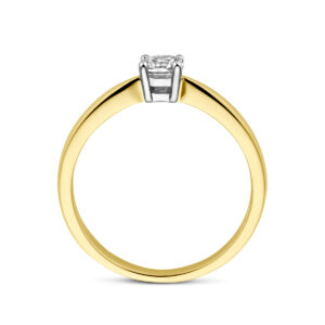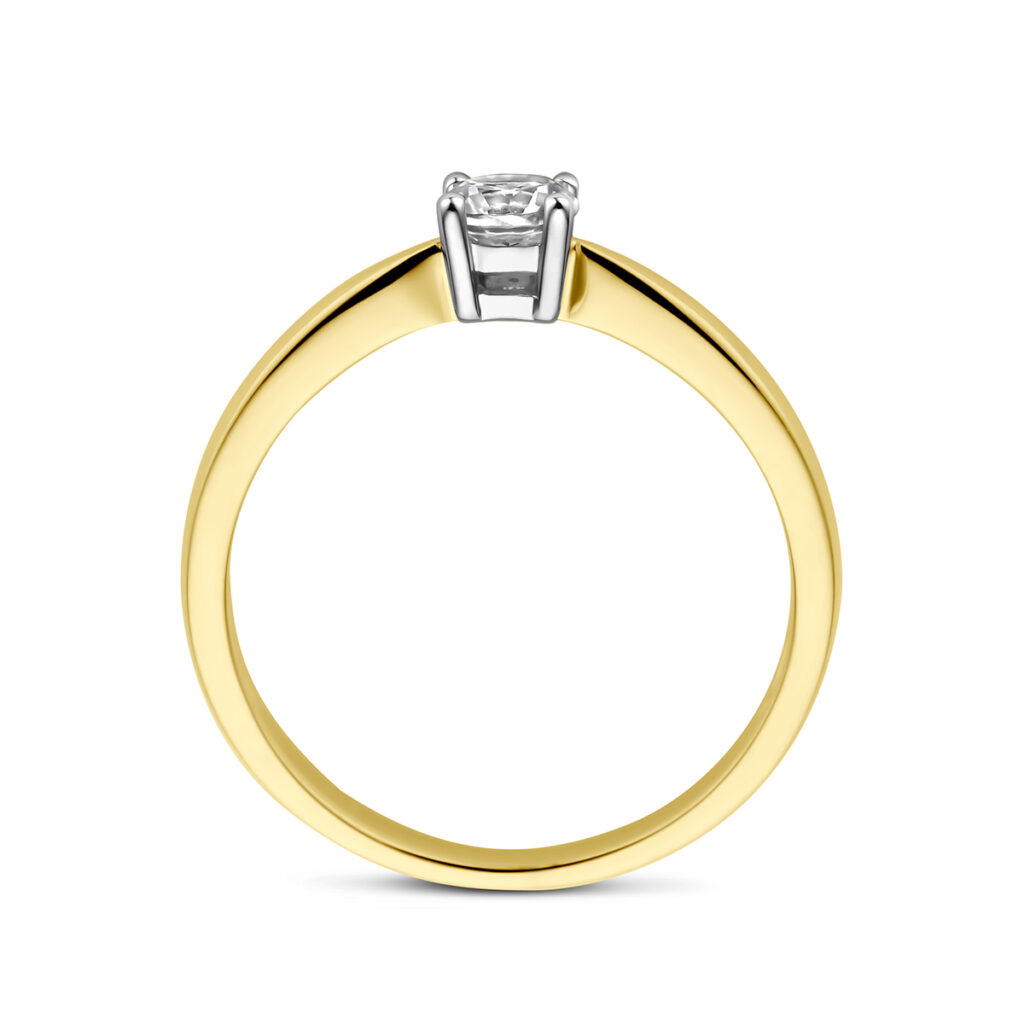 14k Bicolor wit- en geelgouden ring uitgevoerd met een schitterende zirkonia. De ring heeft een breedte van 4mm.