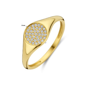 14k Geelgouden ring uitgevoerd met zirkonia. De ring heeft een breedte van 8mm.