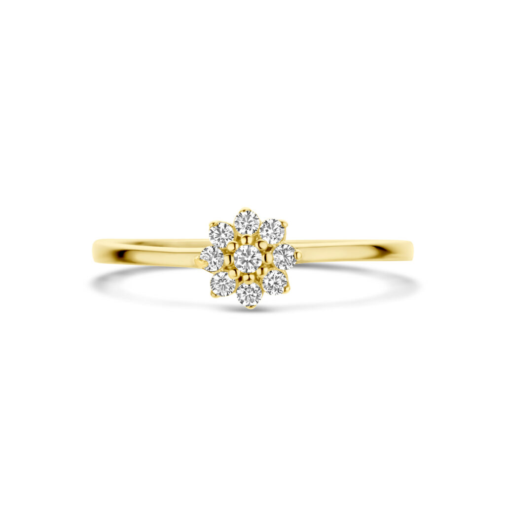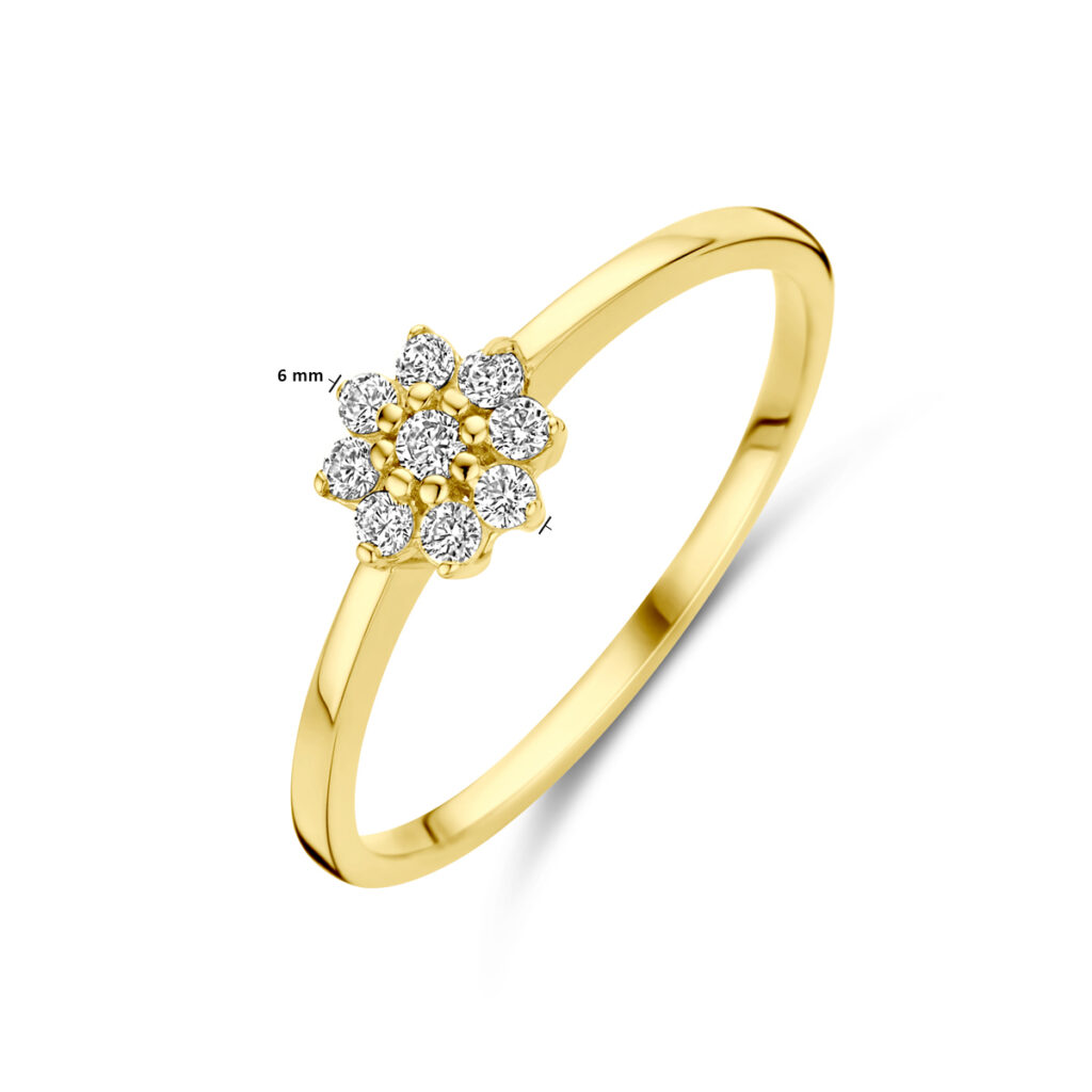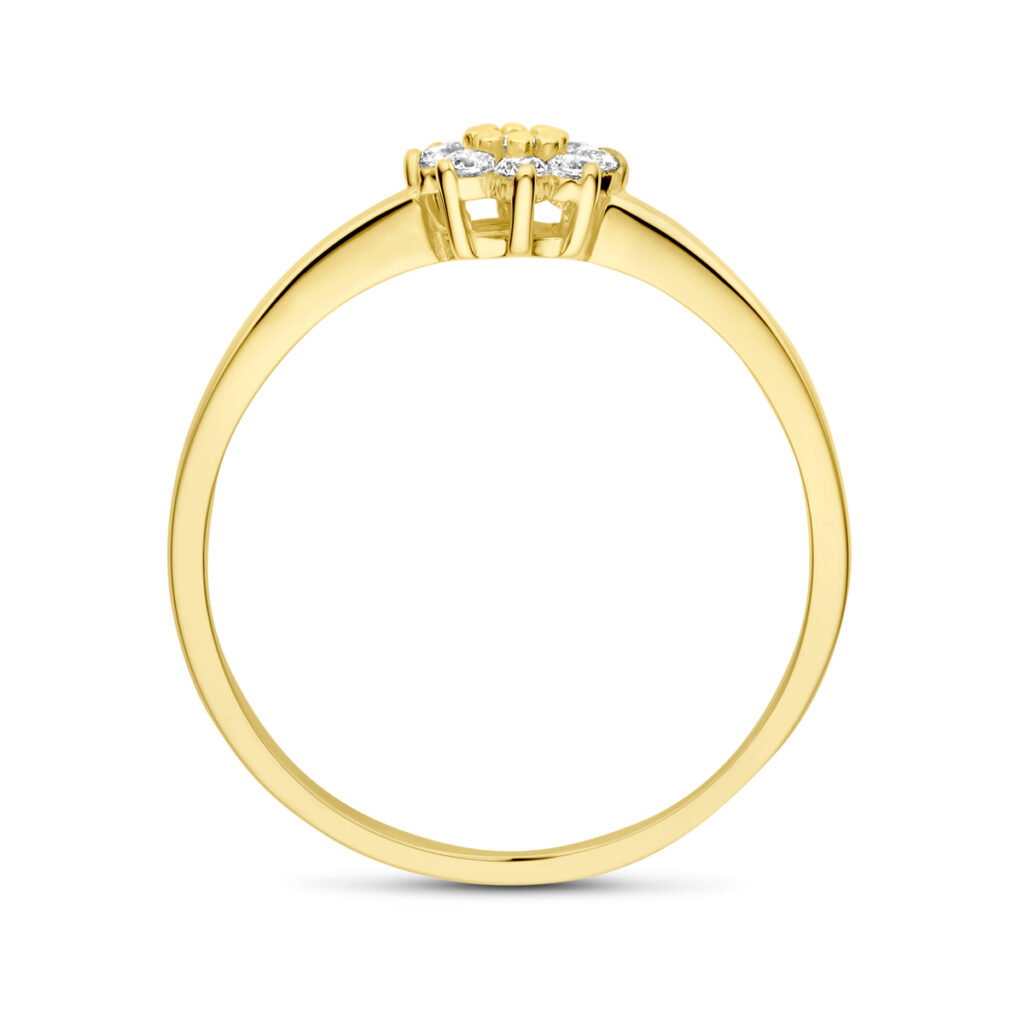 14k Geelgouden ring uitgevoerd met zirkonia. De ring heeft een breedte van 6mm.