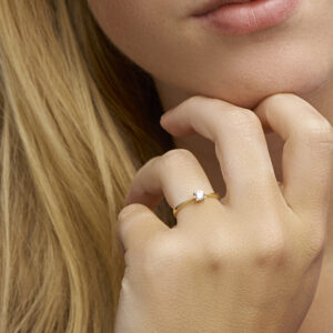 Een solitair gezette ring is de perfecte balans tussen klassiek en glamour. Details: 14k Geelgouden ring met zirkonia.