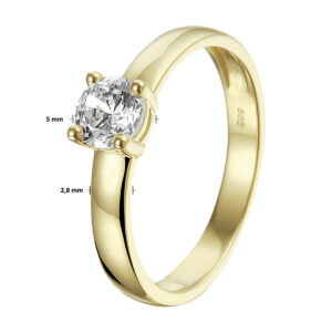 Stijlvolle geelgouden ring met een schitterende zirkonia van 5mm. Tip: Combineer deze ring met bijpassende sieraden uit onze collectie of vanuit je eigen stash en creeer zo elke keer weer een nieuwe look.