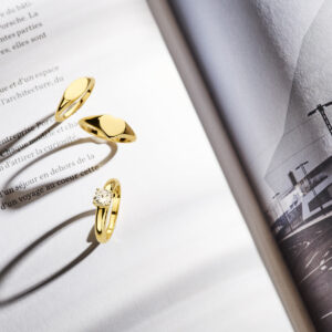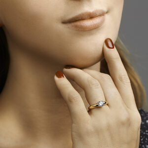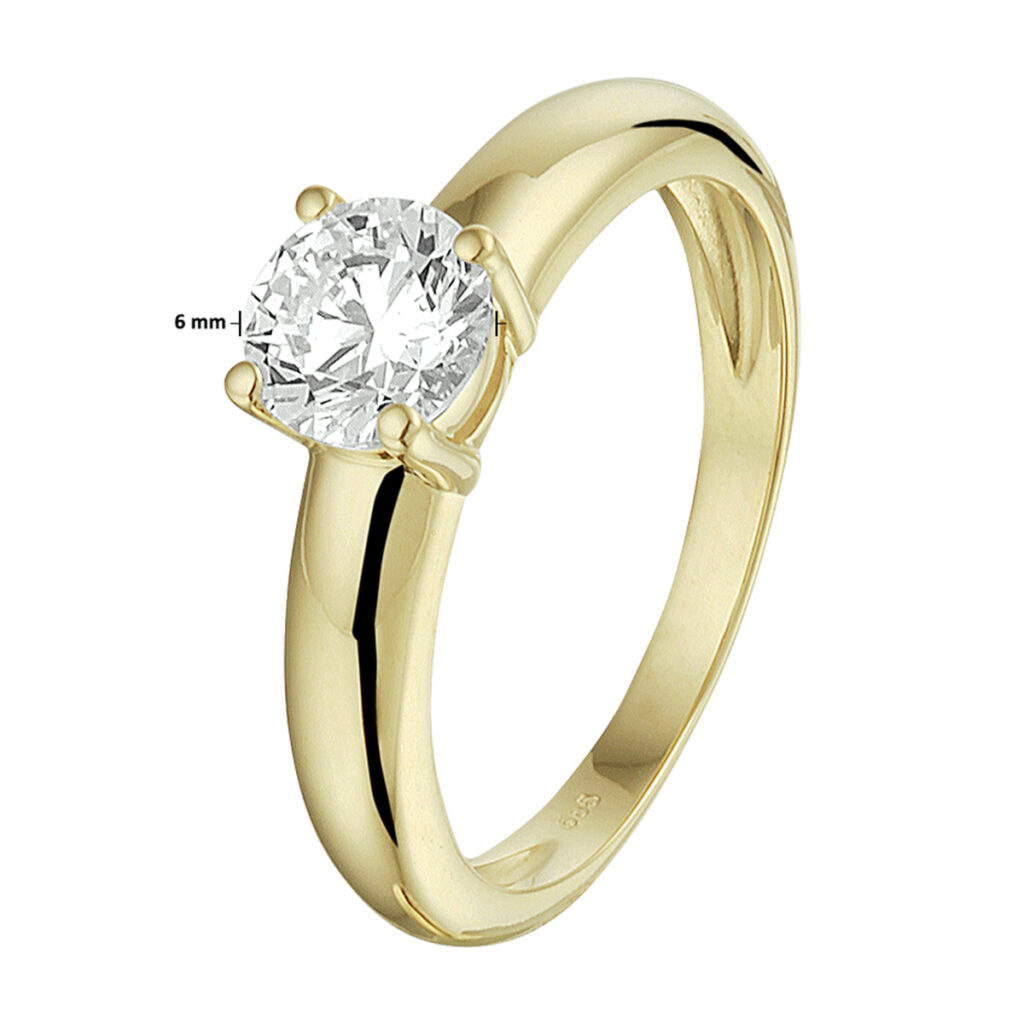 14k Geelgouden ring uitgevoerd met een schitterende zirkonia. De ring heeft een breedte van 6mm.