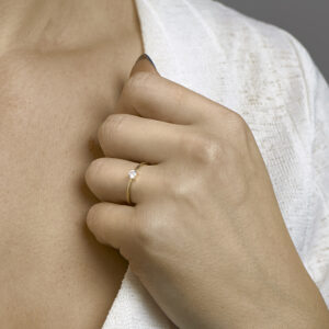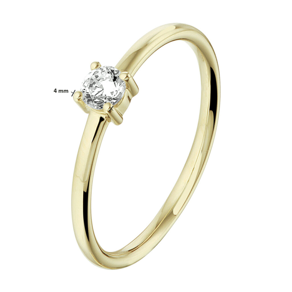 14k Geelgouden ring uitgevoerd met een schitterende zirkonia. De ring heeft een breedte van 4mm.