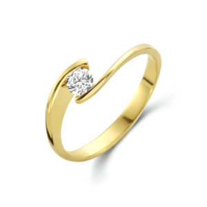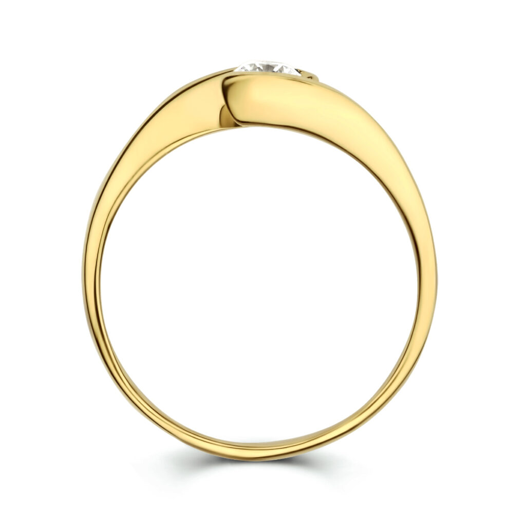 14k Geelgouden ring uitgevoerd met een schitterende zirkonia. De ring heeft een breedte van 5mm.