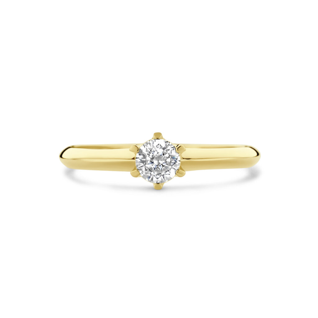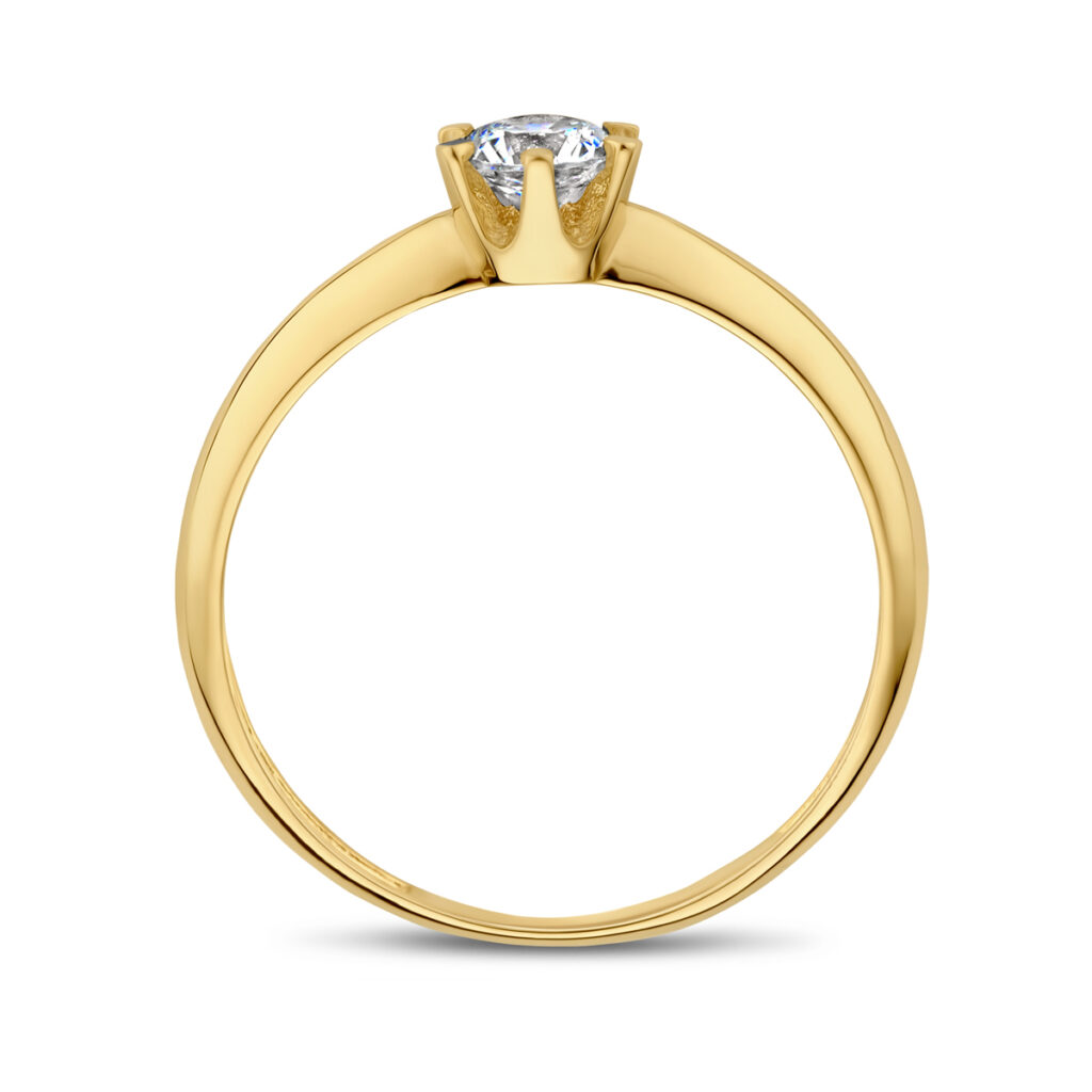 14k Geelgouden ring uitgevoerd met zirkonia. De ring heeft een breedte van 5,5mm.