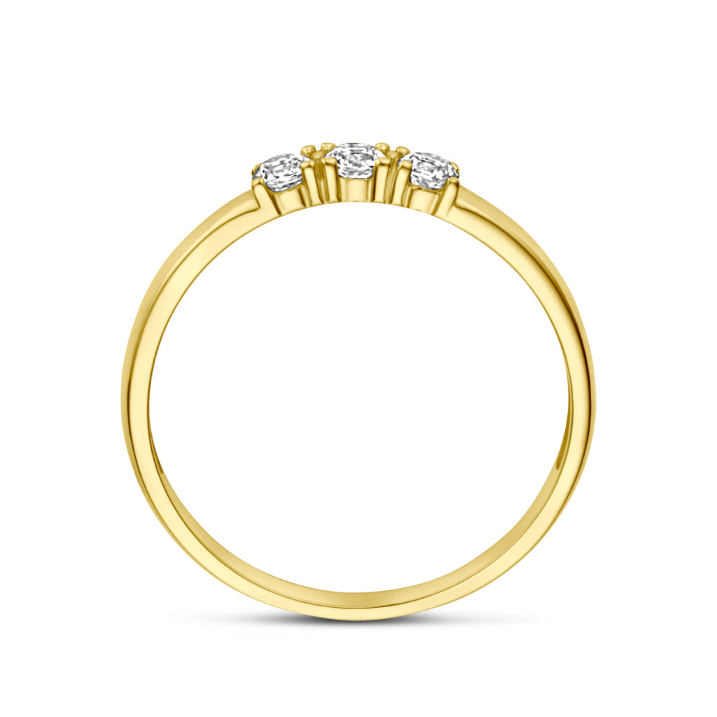 14k Geelgouden ring uitgevoerd met zirkonia. De ring heeft een breedte van 2.5mm.