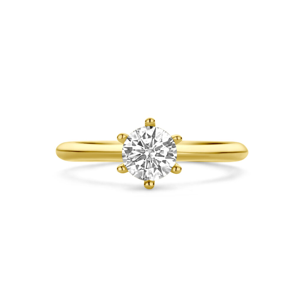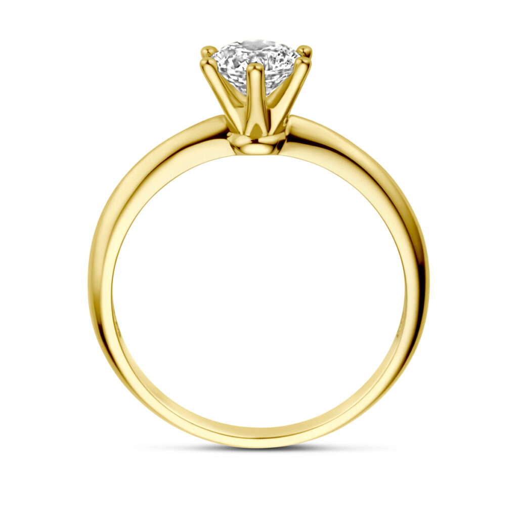 14k Geelgouden ring uitgevoerd met zirkonia. De ring heeft een breedte van 7mm.