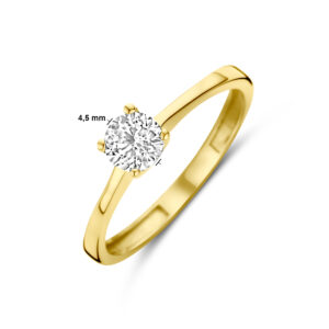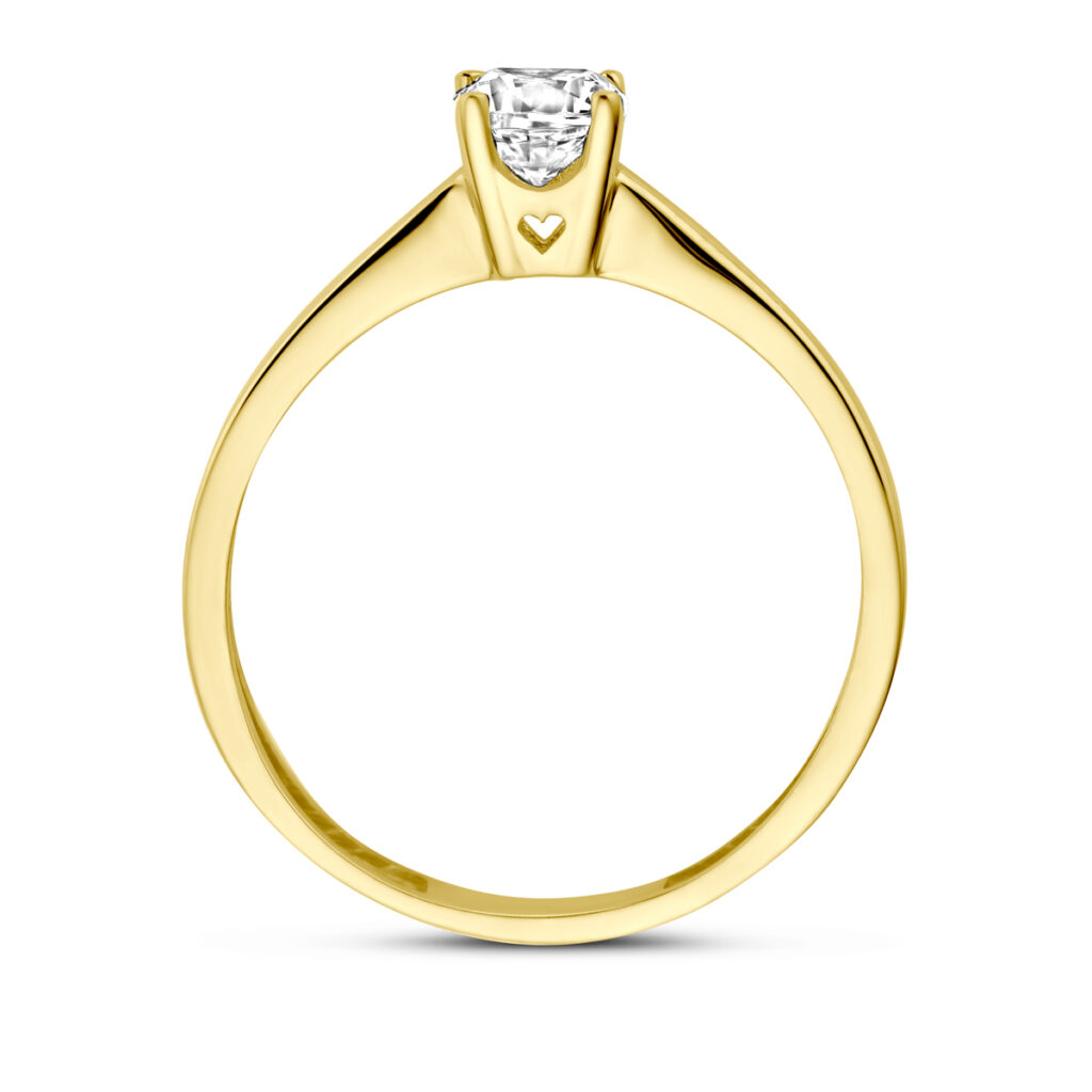 14k Geelgouden ring uitgevoerd met zirkonia. De ring heeft een breedte van 4.5mm.