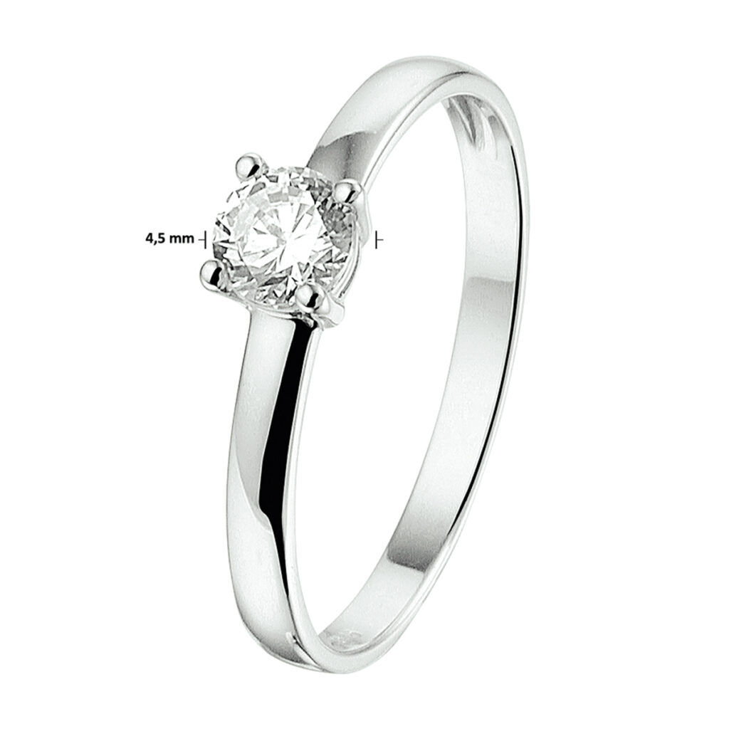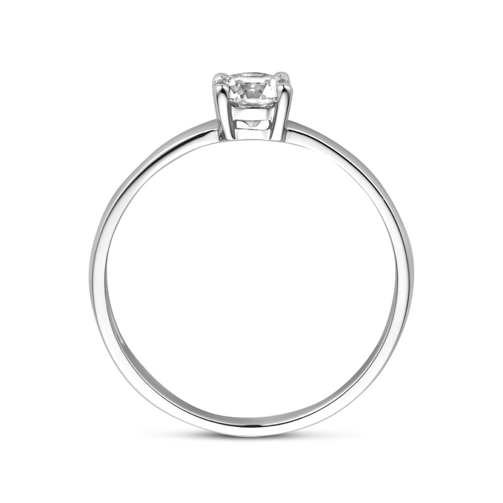 Stijlvolle witgouden ring met een schitterende zirkonia. Tip: Combineer deze ring met bijpassende sieraden uit onze collectie of vanuit je eigen stash en creeer zo elke keer weer een nieuwe look.