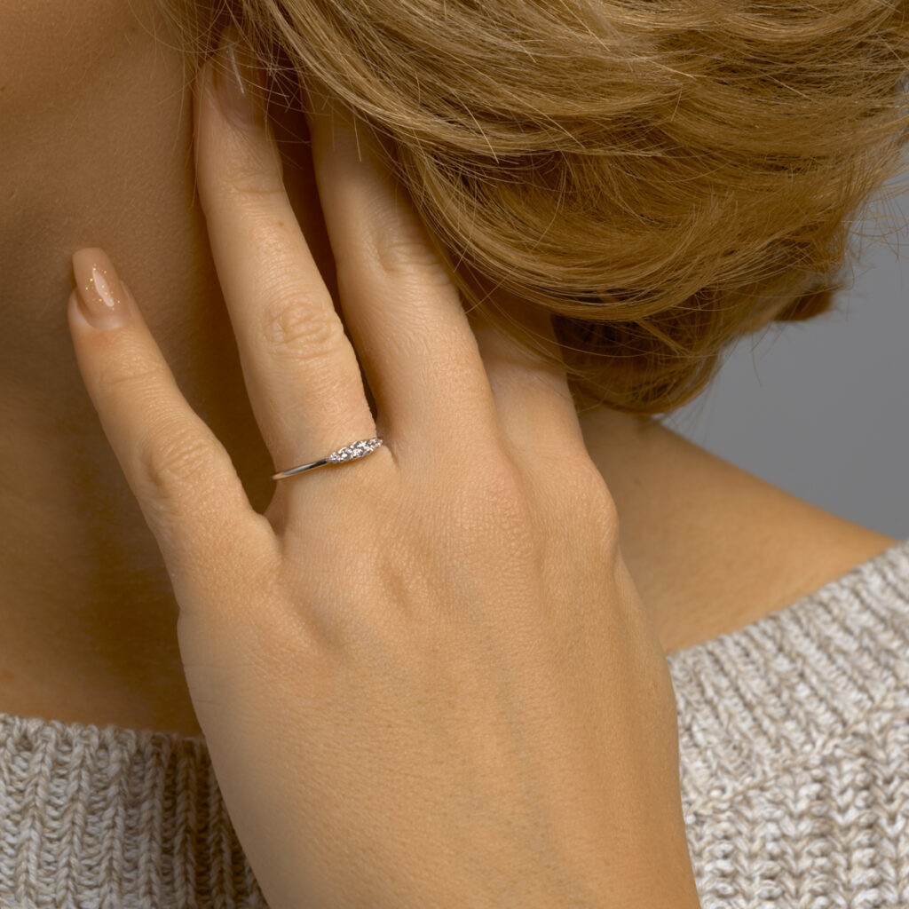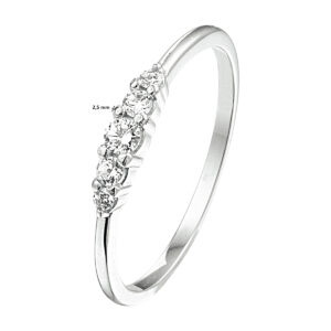 Gerhodineerd 925 zilveren ring uitgevoerd met een schitterende zirkonia rij. De ring heeft een breedte van 2.5mm.