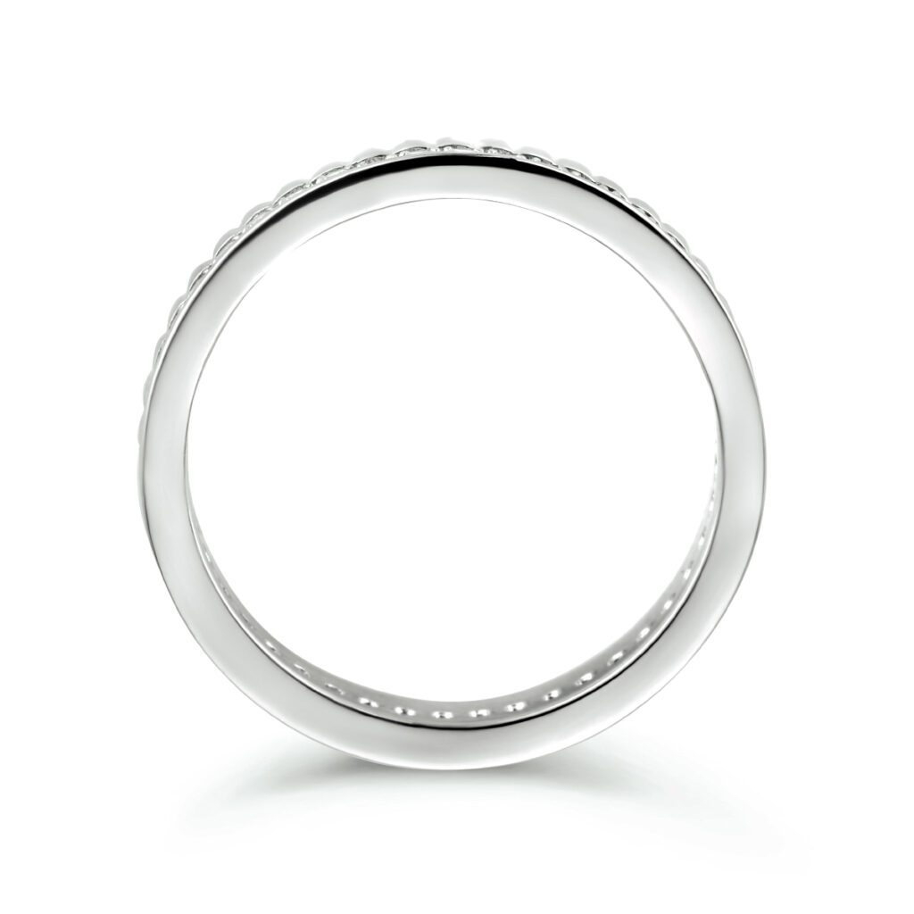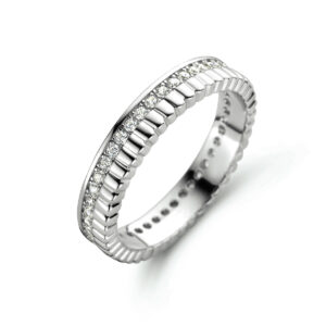 925 Gerhodineerd zilveren ring uitgevoerd met schitterende zirkonia. De ring heeft een breedte van 4.0mm.