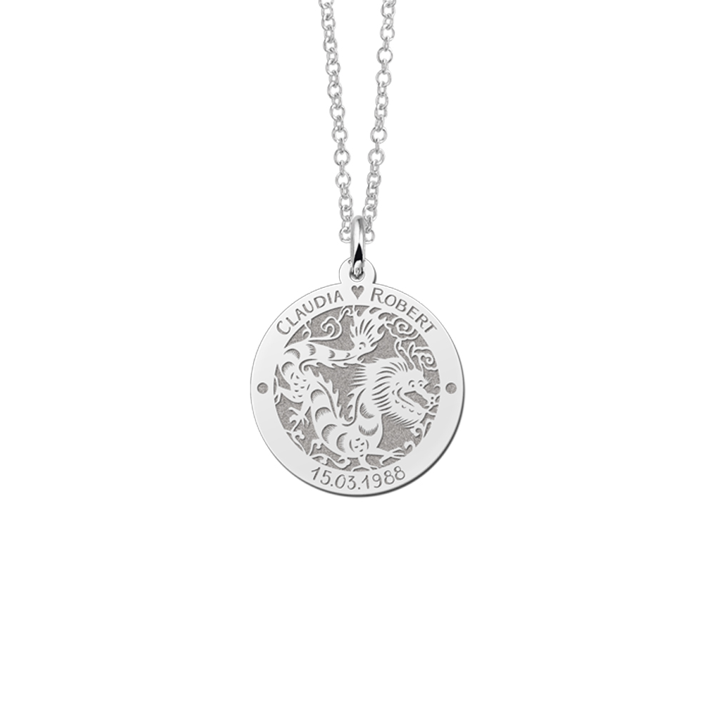Ronde Chinese Sterrenbeeld Draak Hanger van Zilver