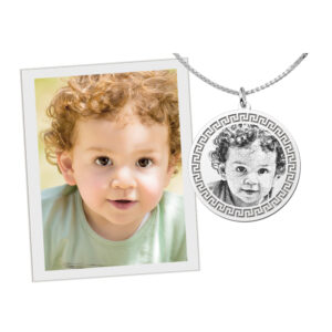Deze Ronde Zilveren Fotogravure Hanger met Meander Rand van Names4ever is volledig te personaliseren met een gedetailleerde fotogravure. Deze hanger bestaat uit een rond plaatje met daarop ruimte voor een fotogravure met langs de rand een Meander patroon. De foto kunt u zelf simpel aanleveren en deze zal vervolgens speciaal voor u op de hanger gegraveerd worden door een ervaren edelsmid in een professioneel atelier. Deze fotogravure hanger is volledig gemaakt van 925 sterling zilver, de allerbeste kwaliteit zilver, en voorzien van een gepolijst oppervlak dat mooi glanst. Deze hanger heeft een diameter van 33mm met een dikte van 0,7mm en is afkomstig van het merk Names4ever, dat garant staat voor de mooiste gravures en de beste gepersonaliseerde sieraden. Vergeet vooral niet om meteen een stijlvol collier bij te bestellen, zodat u deze hanger na ontvangst meteen kunt dragen.