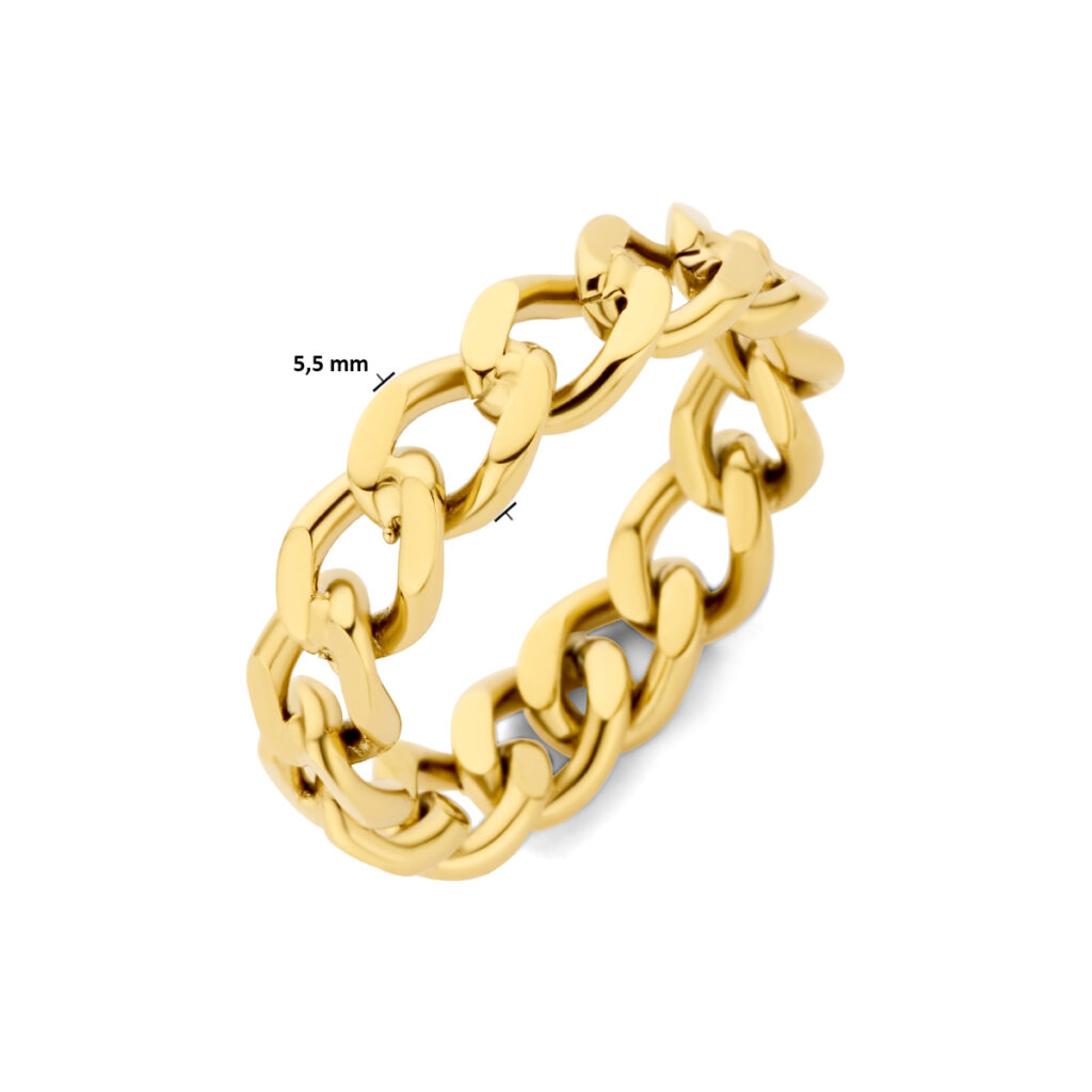 Stalen ring met geelgouden ion plating. De ring heeft een breedte van 5.5mm.