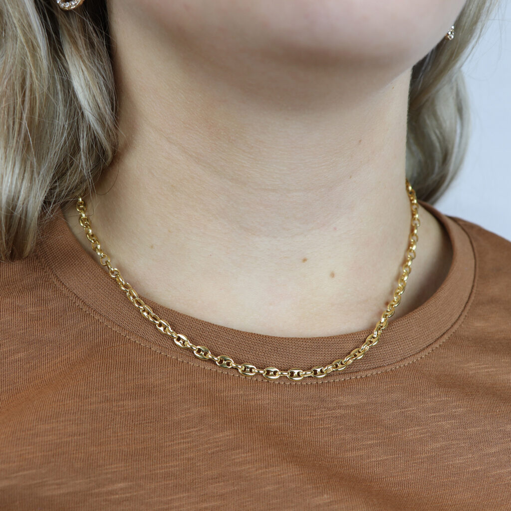 Dit collier van Glow is prachtig voor elke dag! Het collier bestaat uit een fantasieschakel en heeft een breedte van 4,3mm. Combineer het collier met meerdere sieraden van Glow voor een complete look.
