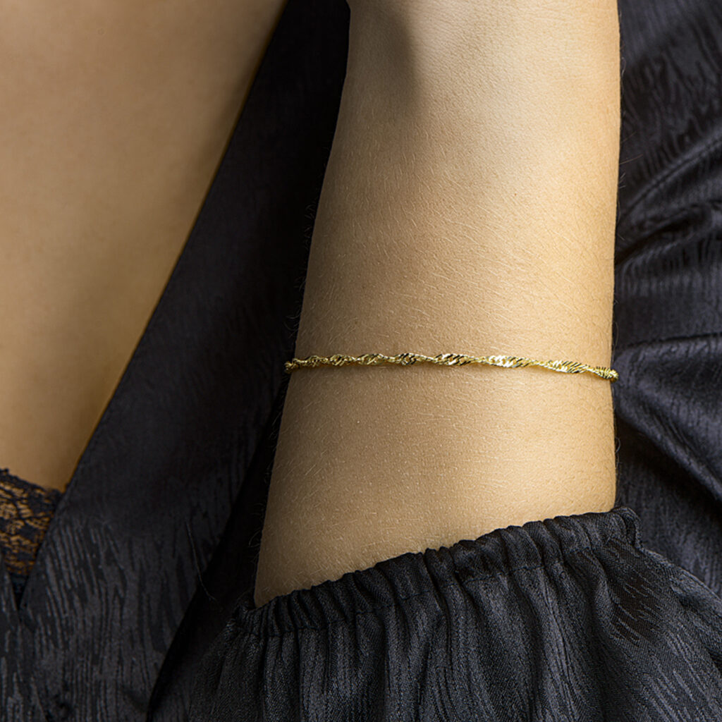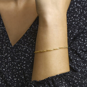 14k Geelgouden lengte artikel met een singapore schakel. De schakelbreedte is 2.3mm.