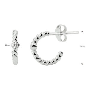 Stekeroorringen Gedraaid Zirkonia Zilver Gerhodineerd