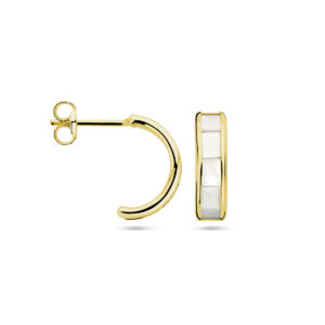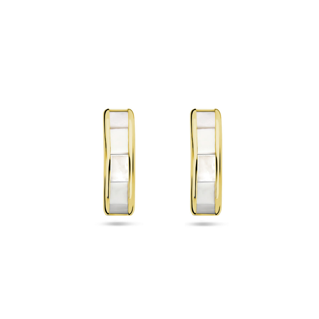 14k Geelgouden stekeroorringen uitgevoerd met parelmoer. De oorringen hebben een afmeting van 12×3.5mm.